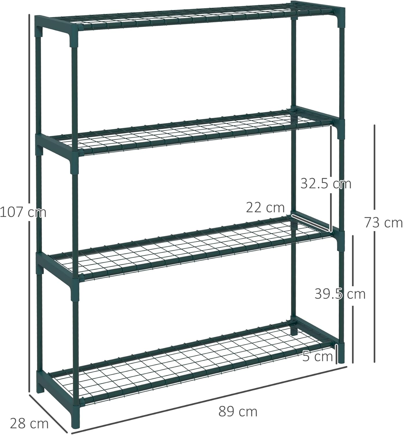 Open wire shelves allow water to drain freely — preventing pooling, reducing moisture damage and helping protect both your plants and the stand from rot.