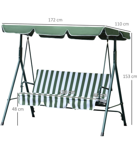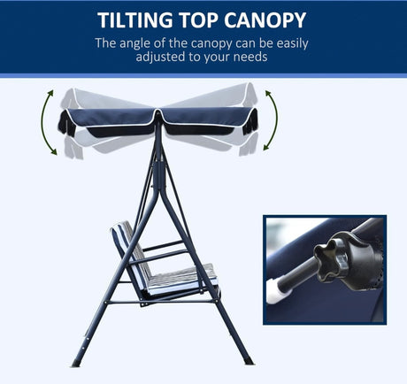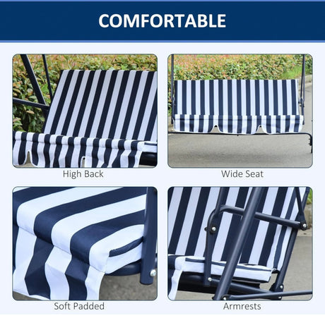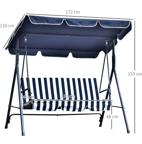 Outdoor 3 Seater Canopy Swing Chair Garden Bench with Adjustable Canopy and Metal Frame Blue