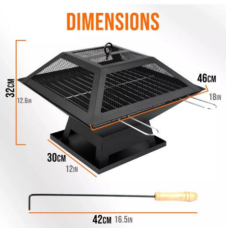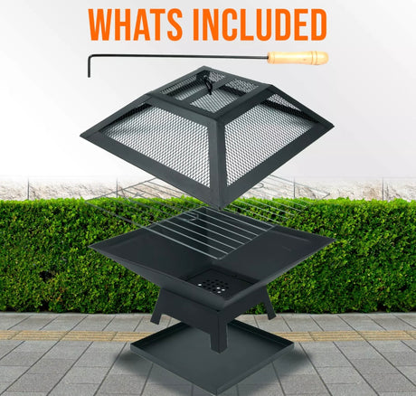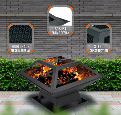 Square Steel Fire Pit Log Burner Heater Brazier Full 360 Degree