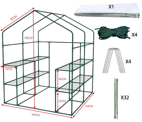 Outdoor White Plastic Polytunnel Greenhouse 143x143x195cm for Garden Grow House