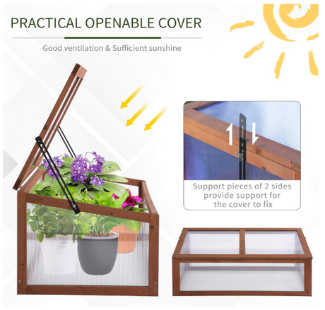 Wooden Cold Frame, Small Polycarbonate Greenhouse with Openable & Tilted Top Cover, 100 x 65 x 40cm