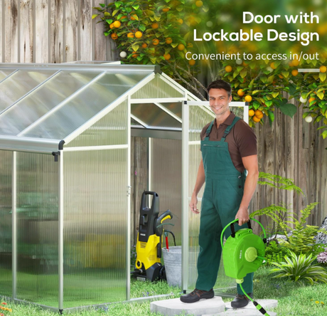 6x8ft Polycarbonate Greenhouse with Rain Gutters, Large Walk-In Greenhouse with Door and Window