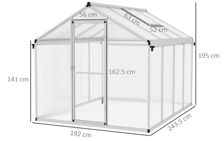 1.8 x 1.8 x 2m Walk-In Polytunnel Greenhouse with Roll-Up Window and Door, Steel Frame
