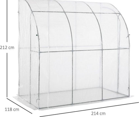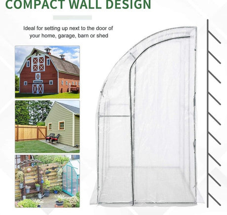 Outdoor Walk-In Lean to Wall Greenhouse with Zippered Roll Up Door and PE Cover
