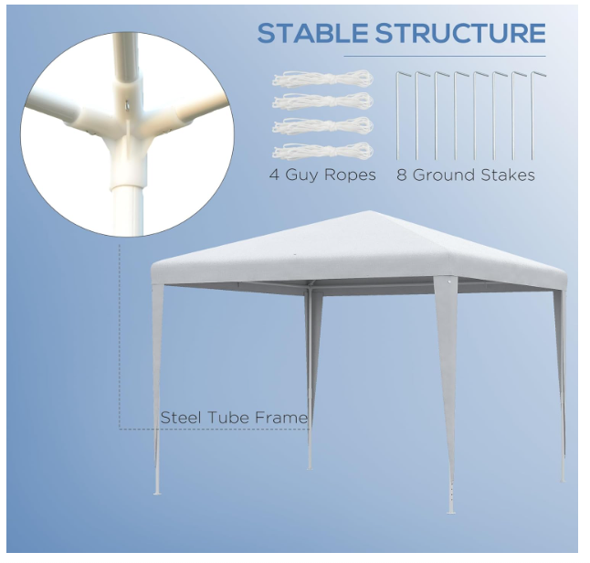 Marquee Dimension: Overall Dimension: 2.7m (Length) x 2.7m (Width) (Note: Not suitable for blustery, high wind conditions).