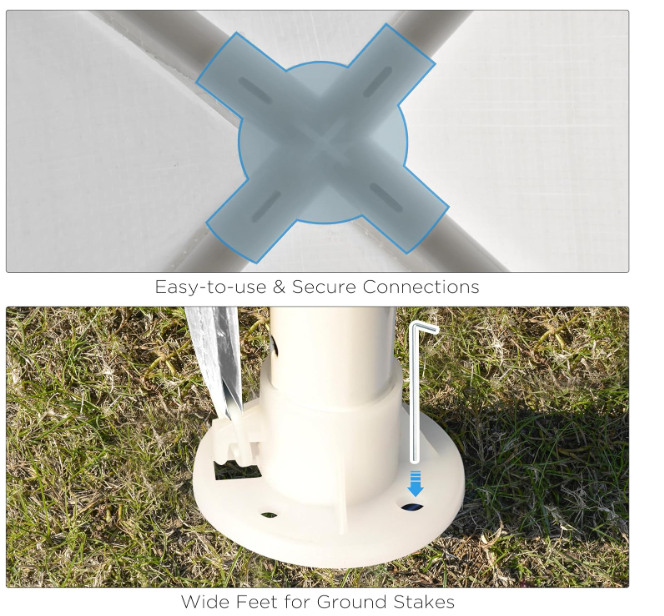 Heavy-Duty Structure: Constructed with a durable steel frame, providing sturdy and firm support. Convenient Details: Includes ropes and stakes for added stability.