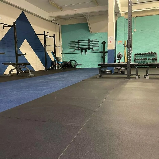 Each 1m x 1m tile is available in thicknesses of 10mm, 15mm, 20mm, 25mm, and 30mm, providing excellent impact absorption for free weights and reliable support for heavy gym equipment such as treadmills, racks, benches, and rowing machines.